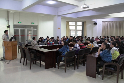 王铁山教授以“Who Where When What How ”四个英文单词引出人生所面临的五个主要矛盾“大小、多少、轻重、缓急、得失”,并指出物理学之精髓为“悟物穷理”,即物理学是以感悟、认知天地之间万事,探索、研究事物之间的内在联系与其自身原理为目的的学科,因此人生矛盾正为物理学研究中的基本,而物理学解释了矛盾之间的变化规律与和谐统一。之后,王铁山教授从人生与社会、恋爱与婚姻、学习与工作、自然与生活四个方面,结合物理学中的静力学、动力学、运动学等基础理论,精彩诠释了人生与社会中的各种现象与物理现象之间的共同性。他把人生之旅比作社会坐标系中的多元函数;用原子模型描述人际关系;用核反应中的各种现象揭示和解析了婚姻、感情、家庭……最后,王铁山教授以一首《我侬词》结束了此次讲座。讲座后,王铁山教授又就本科生留学出国等问题与大家进行了讨论。