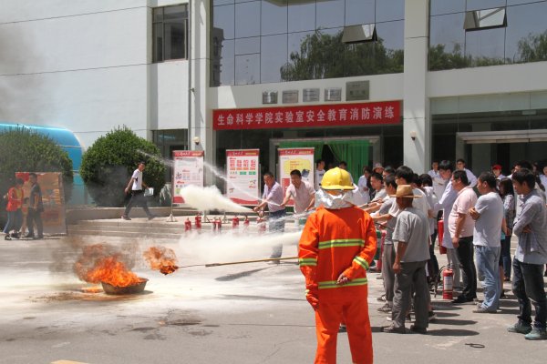 School of life sciences launches laboratory safety education fire drill in Yuzhong Campus October 13,2022 In order to improve the fire awareness of teachers and students and enhance the ability of teachers and students to deal with fire, especially in laboratory fires, on the afternoon of June 21, 2018, with the help and support of the school security department, the College of Life Sciences launched a fire drill for laboratory safety education in front of Helan Hall in Yuzhong Campus. Relevant person in charge and staff of the College of Life Sciences, part of the experimental teachers in the experimental center, part of the graduate students in the drought laboratory, and representatives of all classes of undergraduate students from Grade 1 to Grade 3 participated in the activities. At the beginning of the activity, Xu Wenpeng, as the deputy dean in charge of safety and stability, stressed to the teachers and students the importance of doing a good job in laboratory safety. Then, Yang Wenjun, a fire engineer from Gansu Jindongheng Fire Inspection Co., Ltd, explained the fire fighting knowledge to the teachers and students participating in the fire drill, and introduced in detail the use steps and precautions of different fire types, different fire extinguishers and fire extinguishers, and gave a fire fighting demonstration. Subsequently, the participating teachers and students dressed in experimental clothes, one by one operation, on-site ignition of the simulated flame extinguishing, a preliminary grasp of the use of various fire extinguishers and laboratory fire disposal methods. In more than half an hour of activity, the participating teachers and students tried to extinguish the fire through hands-on operation, which not only strengthened the awareness of fire safety, but also learned the skills of being able to deal with dangers calmly when a fire broke out, and unanimously expressed great benefits. TAGS : Prev: The National Academy of life sciences 2018 National Excellent Youth Science summer camp was held successfully Next: College 2016 undergraduate professional shunting work is successfully completed